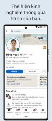 Với một hồ sơ cá nhân được tinh chỉnh trên LinkedIn, bạn dễ dàng thể hiện kinh nghiệm, thành tựu và kỹ năng cốt lõi của mình, biến nó thành một bản CV trực tuyến sống động thu hút các nhà tuyển dụng. Nắm bắt tin tức kinh doanh mới nhất và các xu hướng ngành đang định hình tương lai. Nhận các thông báo việc làm được cá nhân hóa, giúp bạn không bỏ lỡ bất kỳ cơ hội nào phù hợp nhất. LinkedIn là chìa khóa để bạn luôn dẫn đầu, liên tục cập nhật và làm chủ con đường sự nghiệp của chính mình.