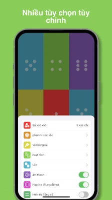 Sự tùy chỉnh là chìa khóa để tạo nên phong cách riêng. Tự do lựa chọn phạm vi giá trị cho xúc xắc, từ thiết lập cổ điển 1-6 điểm đến một phạm vi mở rộng từ 0-100, đáp ứng mọi quy tắc trò chơi. Hơn nữa, mỗi viên xúc xắc có thể khoác lên mình một màu sắc riêng biệt, tạo nên một bàn chơi đầy cá tính và sinh động. Bạn muốn nhìn thấy kết quả dưới dạng chấm truyền thống hay con số rõ ràng? Tất cả đều nằm trong tầm tay bạn. Khám phá các hiệu ứng tung xúc xắc sống động với nhiều tùy chọn tốc độ, từ chuyển động đầy đủ, giảm bớt, hoặc tắt hoàn toàn nếu bạn ưu tiên sự gọn gàng.