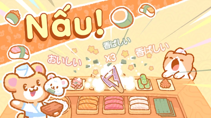 Với vai trò quản lý tài ba, bạn sẽ không đơn độc trên con đường này. Tập hợp một đội ngũ nhân viên độc đáo – những người bạn động vật tinh nghịch nhưng tận tâm, luôn sẵn lòng hỗ trợ bạn trong mọi công việc. Từ việc chào đón thực khách sành ăn đến trang trí không gian theo phong cách riêng, phản ánh cá tính của bạn hoặc làm hài lòng sở thích đa dạng của khách hàng. Hãy biến "Quán Sushi Kuma" thành một điểm đến ấm cúng, độc nhất vô nhị và tràn đầy sức sống.